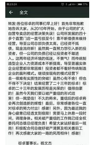 下面是董事長楊文杰宣布破產的原因: