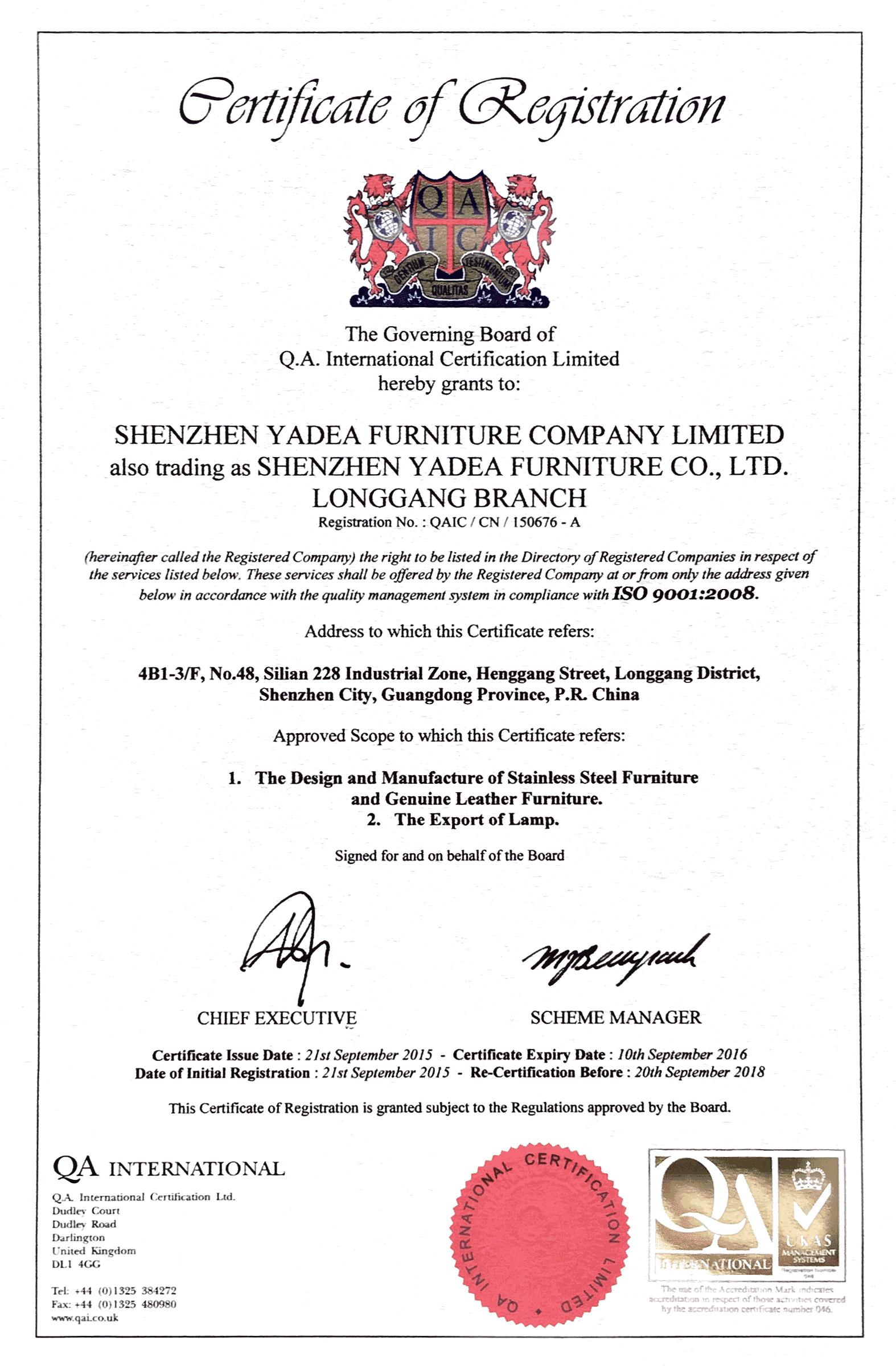 - 國際標(biāo)準(zhǔn)認(rèn)證證書