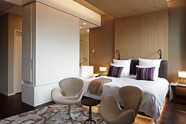 臥室是有天鵝椅子(Swan Chair)與現(xiàn)代床組成。